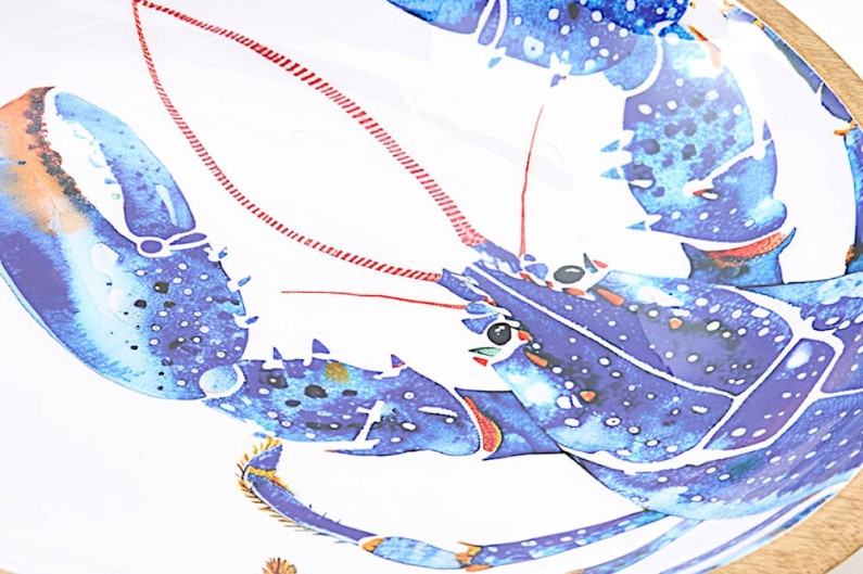 Bol fabricat en fusta de te primera qualitat i esmaltat amb una llagosta impresa al interior. Ideal per posar la fruita al centre de la taula.