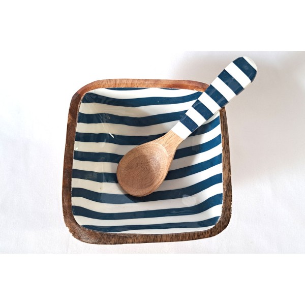 Bol fabricat en fusta esmaltada a ratlles amb cullera.