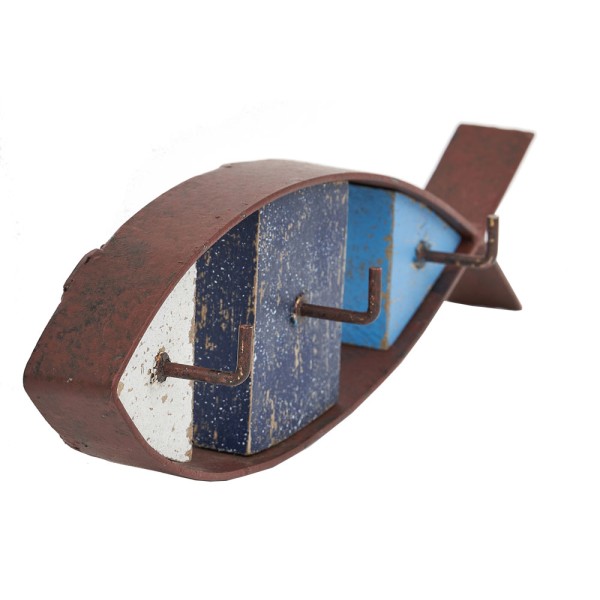 Penjador de claus, fabricat a mà amb fusta i acer, en forma de un peix.