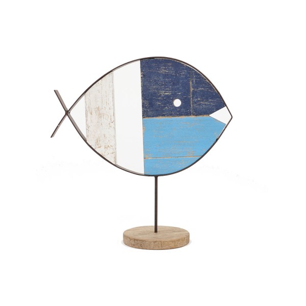 Figura de sobretaula de un peix, fabricat artesanalment de fusta i acer.