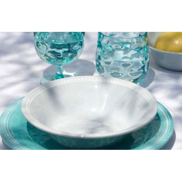 Set de 16 peces, que inclou: 4 plats plans, 4 plats fondos, 4 plats postres, 4 tasses mug i bossa de transport. Sèrie Acqua.