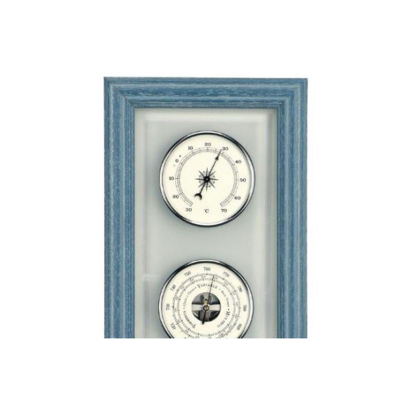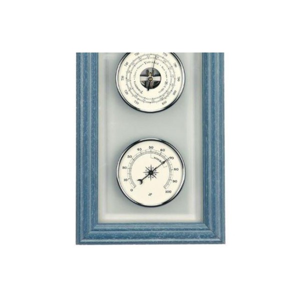 Estació meteorològica. Disposa de humitat, pressió atmosfèrica i la temperatura podent realitzar una previsió meteorològica bàsica de tot navegant. Estan muntats sobre un marc de fusta.