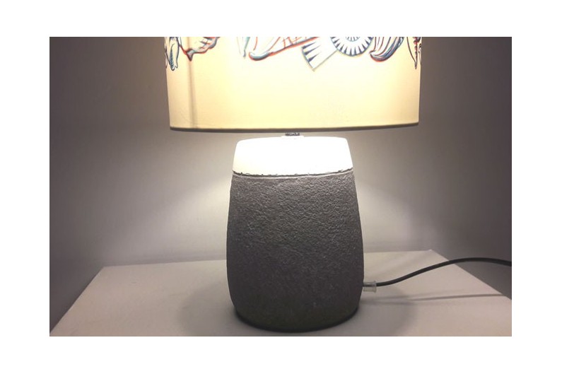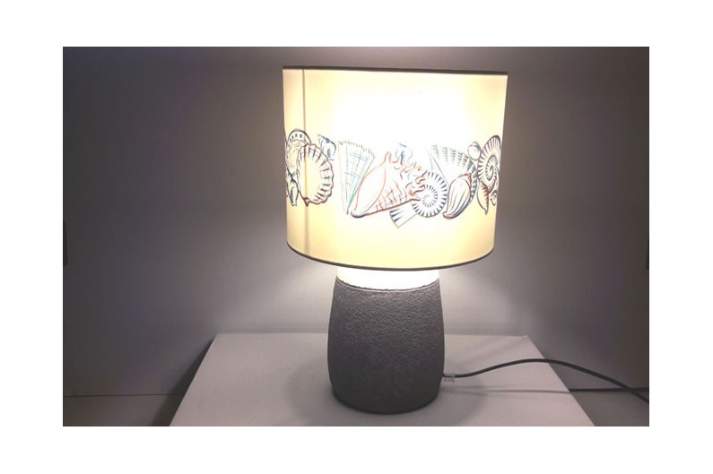 Llum nàutica decorativa fabricada en ceràmica, pintada i decorada amb una àncora marina. Funciona amb 220v. Bombeta E14. Fotografies preses amb bombeta led de 6w i 2700K