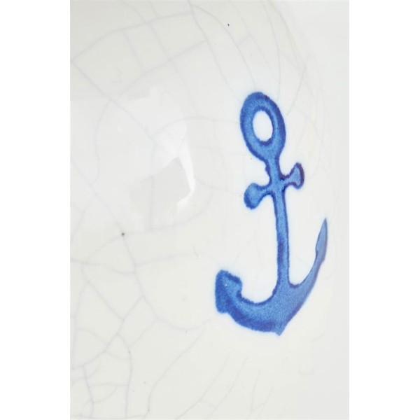 Llum de taula decorativa de tarracota de color blanc, amb una àncora blava impresa. Incloeu cable negre amb interruptor.