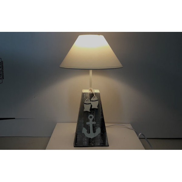Llum nàutica decorativa fabricada en fusta, pintada i decorada amb una àncora marina.
