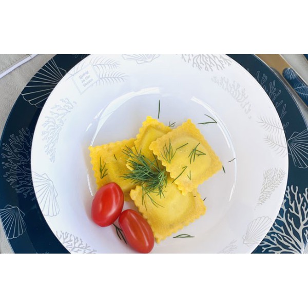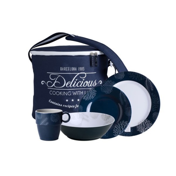 Set de 16 peces, que inclou: 4 plats plans, 4 plats fondos, 4 plats postres, 4 tasses mug i bossa de transport.