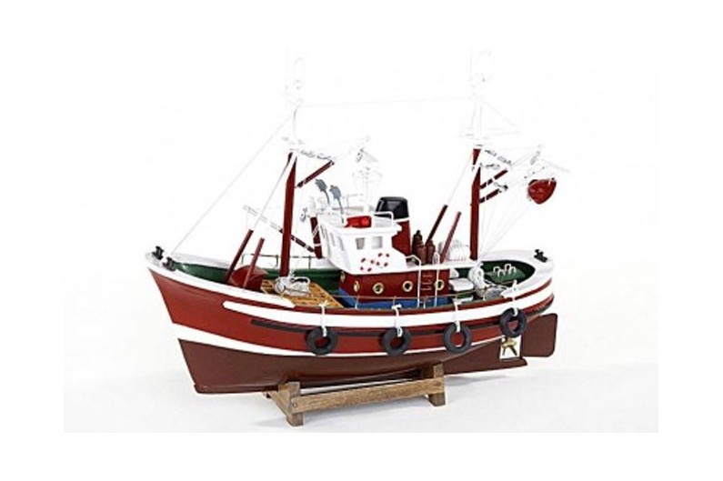 Pesquer de l'atlàntic nord. La seva característica essencial és la seva proa elevada que el protegeix del mar enfurismat. Maqueta decorativa, fabricada a de fusta i pintada a mà.