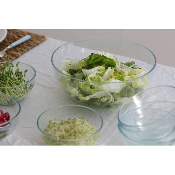 Ensaladera rodona transparent amb coberts. El metilestirè és un material d'alta qualitat, irrompible, resistent a cops i amb què a més evitarem les ratllades.