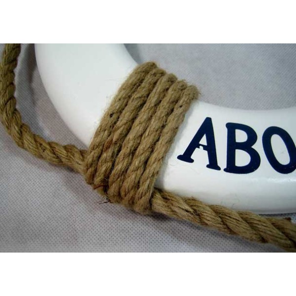 Salvavides amb la inscripció "WELCOME ABOARD" d'estil rústic. L'objecte ideal per donar un toc marí a la decoració. Realitzat en fusta amb una corda de cànem lligada al seu voltant.