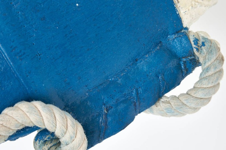 Rèplica exacta d'un salvavides, ideal per donar un toc marí a la decoració. Realitzat en porexpan al seu interior i recobert d'una lona de cotó. La corda de cotó lligada al seu voltant s'utilitza per poder agafar-se.