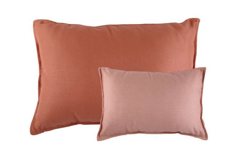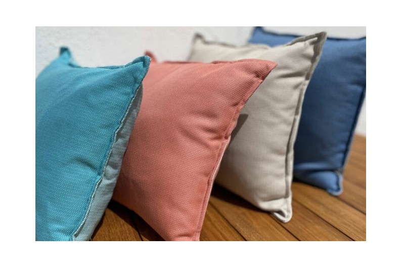 Set de dos coixins ARUBA resistents a l'aigua. Estan fets amb polipropilè, teixit impermeable que evita que entri aigua a l'interior a més de poder rentar-lo de forma fàcil tan sols amb un drap humit.