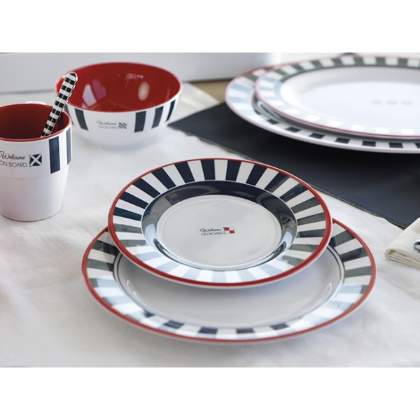 Set de 16 peces, que inclou: 4 plats plans, 4 plats fondos, 4 plats postres, 4 tasses mug i bossa de transport.