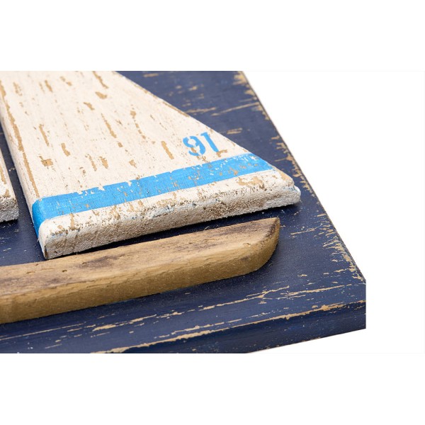 Set aus 3 dekorativen Marinegemälden aus Holz. Drei wunderschöne Segelboote zur Heimdekoration.