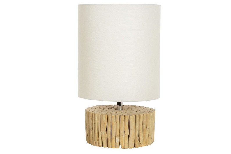 Lampe aus natürlichem Meeresholz mit weißem Schirm. Eine sehr stilvolle Lampe, die das Innere des Hauses mit einem dekorativen Licht erhellt.