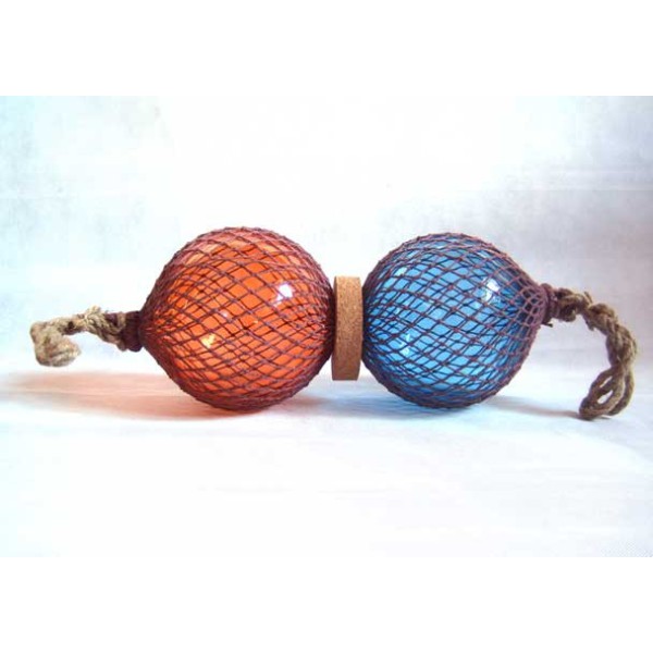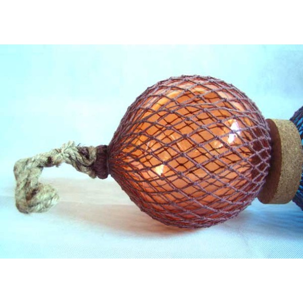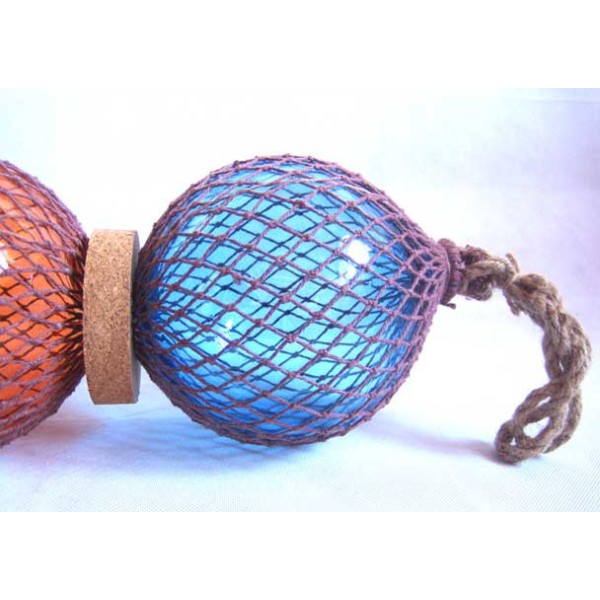 Fischer-Boje in blau und orange. Die Fischer-Boje war ein alter Schwimmer bestehend aus einer Glaskugel in einem geflochtenen Seil gewickelt. Diese Schwimmer wurden bis in die 50er Jahre verwendet . Sie wurden an die Fischernetze festgemacht damit sie an der Oberfläche blieben während sie vom Strom getrieben wurden. Ein Objekt, das ein dekorativer Meeres-Touch gibt.