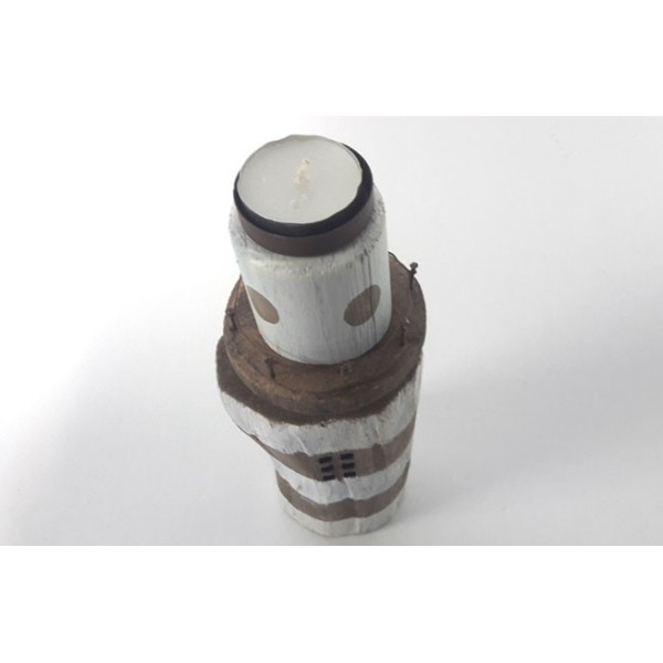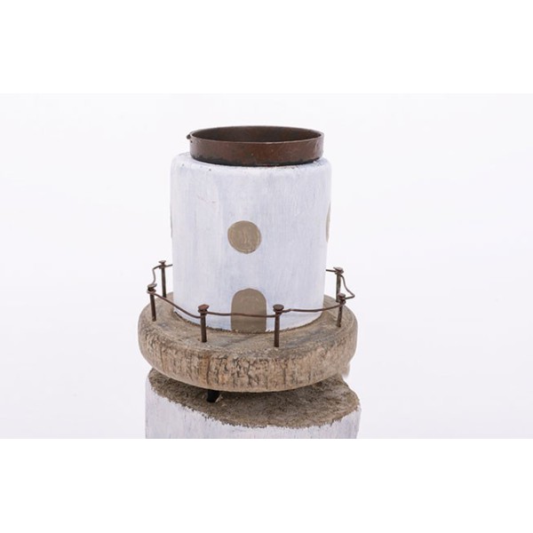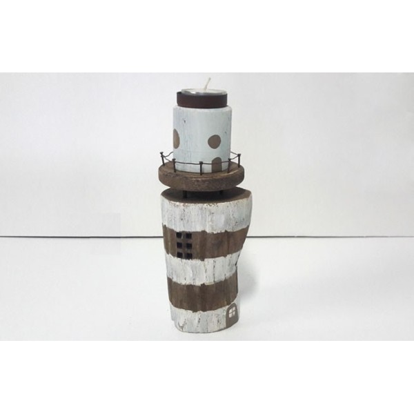 Kerzenhalter in Form eines Leuchtturms aus Holz.