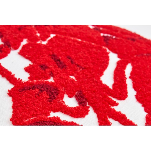 Kissen aus Baumwolle und Wolle mit unabhängiger Füllung und Reißverschluss zum Waschen. Aufgedruckt ist ein roter Hummer. Hochwertiges Kissen.