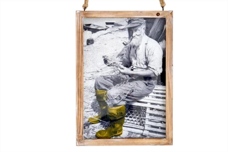 Dekoratives maritimes Gemälde mit einem von Hand lackierten Holzrahmen. Es zeigt einen traditionellen Fischer.
