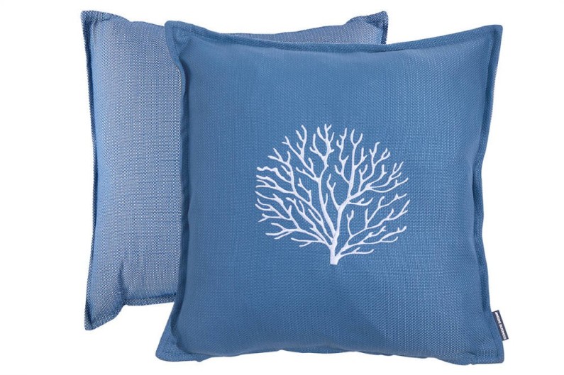 Set aus zwei wasserfesten ARUBA-Kissen. Sie bestehen aus Polypropylen, einem wasserdichten Stoff, der das Eindringen von Wasser in das Innere verhindert und sich einfach mit einem feuchten Tuch waschen lässt.