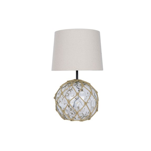 Tischlampe aus Glasbojen mit Lampenschirm aus durchscheinend Stoff.