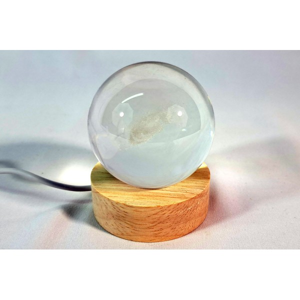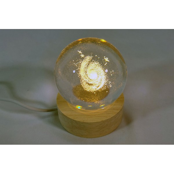 LED-Licht, das eine astronomische transparente Kugel beleuchtet. Im Lieferumfang sind die Glaskugel, der LED-Sockel und das USB-Kabel enthalten.