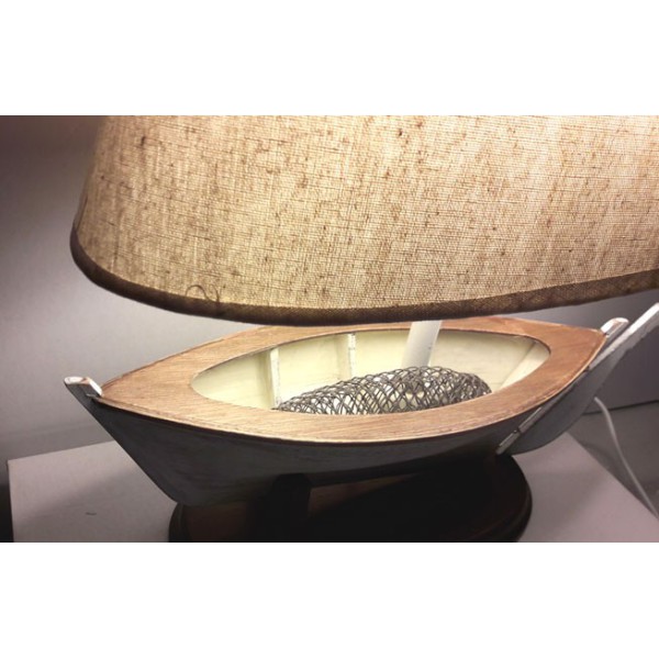 Bootlampe. Eigenartige nautische Lampe, aus einem Bootsrumpf hergestellt, aus dem eine Kerze ragt. Von Hand hergestellt und bemalt. Wird mit dem Bildschirm geliefert.
