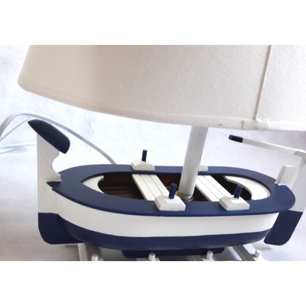 Bootlampe. Eigenartige nautische Lampe, aus einem Bootsrumpf hergestellt, aus dem eine Kerze ragt. Von Hand hergestellt und bemalt. Wird mit dem Bildschirm geliefert.