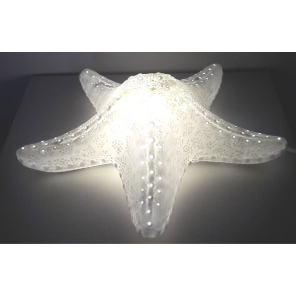 Seestern-Lampe aus durchscheinendem Porzellan. Schöne Lampe, die ein warmes Licht gibt, ideal für eine gemütliche und entspannende Stimmung.