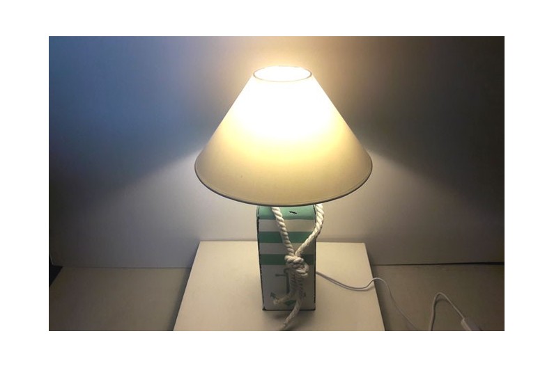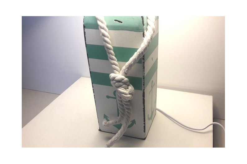 Dekorative Lampe mit Bake-Fußform aus Kiefernholz. Handgemacht und handbemalt.