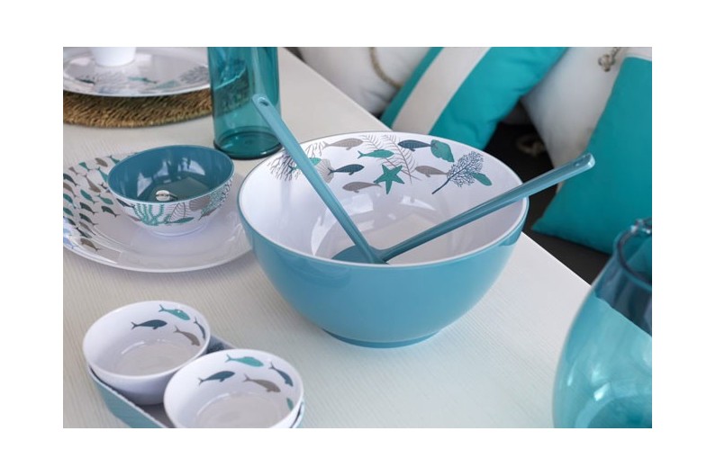 Set of 24 pieces, including: 6 dinner dishes, 6 bowl dishes, 6 dessert dishes, 6 mugs and transport bag.