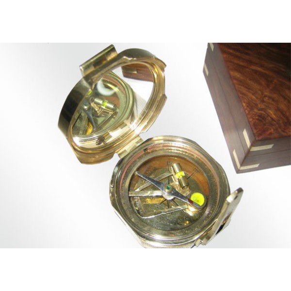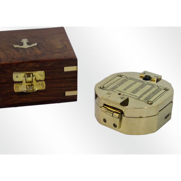 Beautiful replica of a Brunton ship compass, made of polished brass. Includes wooden box lined inside with registration anchor. The diameter of the compass is 8cm. It works perfectly although its use should be exclusively decorative. History of the ship compass