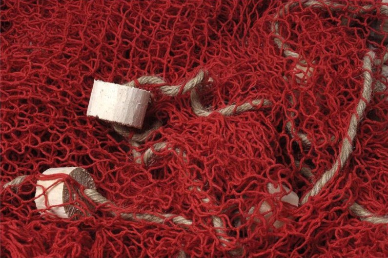 Cotton fishing net edged with floats attached with hemp rope. For a decorative marine touch.