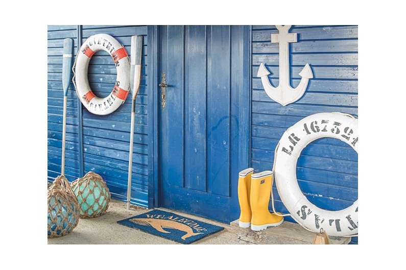 Exact life ring replica to lend a decorative marine touch. Cotton canvass covered expanded polystyrene with cotton rope surround for holding on to.