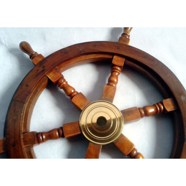 Nautical 6-spoke ship's wheel decoration in rustic style hand painted wood.