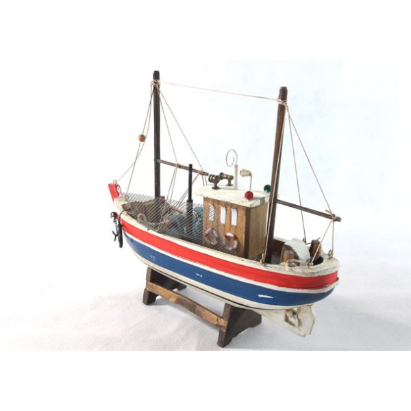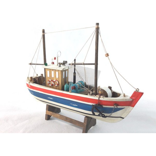 Beautiful FULLY ASSEMBLED model of a fishing boat, which decorates both his home and office, and is a memorable gift that lasts through time. High quality construction with materials, with emphasis on the smallest details. Measure also the shelf or place where you plan to put this beautiful reproduction, as these models are larger than they appear.