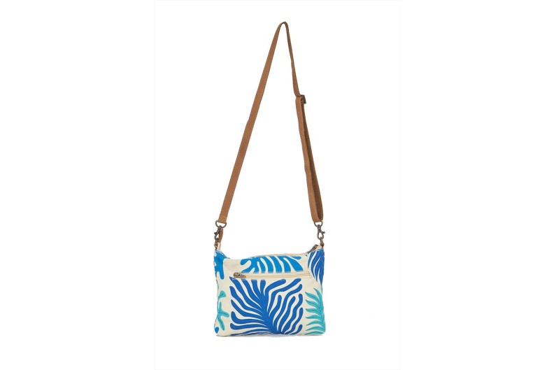 Beautiful handbag made of cotton, with leather straps.