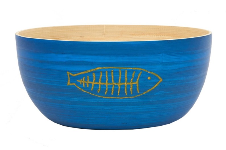 3 bamboo wood bowls, in different blue colors. Durable and eco-friendly bamboo tabletop accessories. A colorful product for any occasion indoors or outdoors.