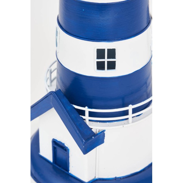 Handcrafted marine lighthouse in very bright colours that works with 220v. for office that reproduces a real lighthouse. Very decorative and nautical
