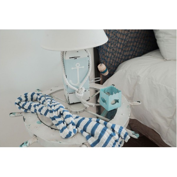 Beacon lamp inspired by floating maritime beacon buoys. Nautical decorative wooden lamp, painted and decorated by hand. Comes with lampshade.