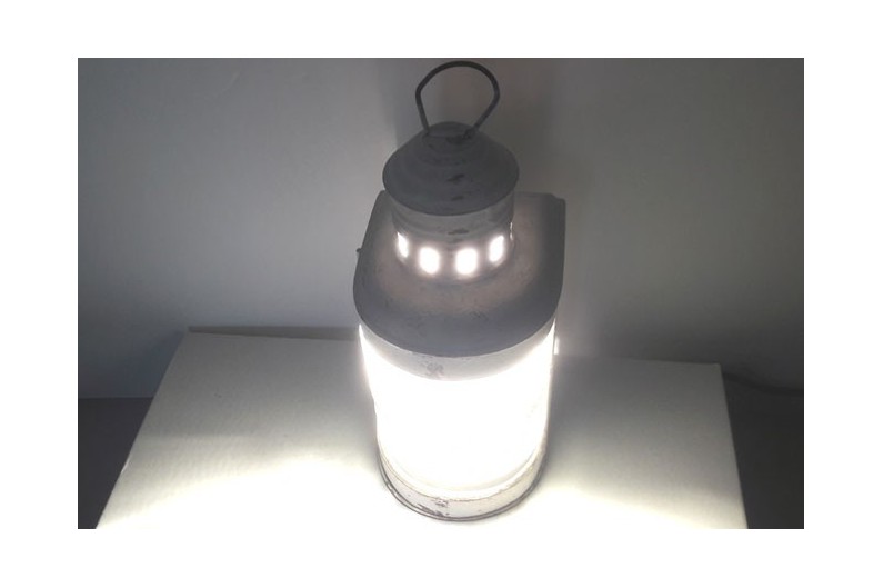 Metallic electric lantern that simulates a storm lamp.