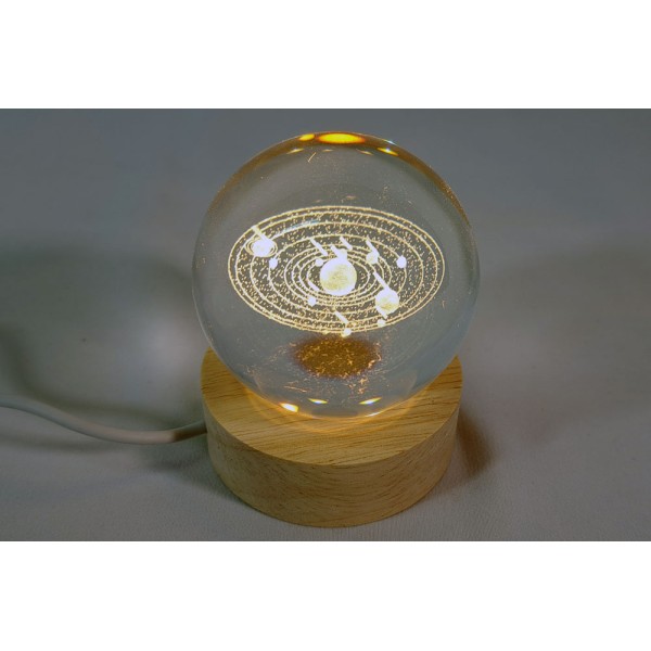 Led light that illuminates an astronomical transparent ball. It includes the glass ball, the led base and USB cable.