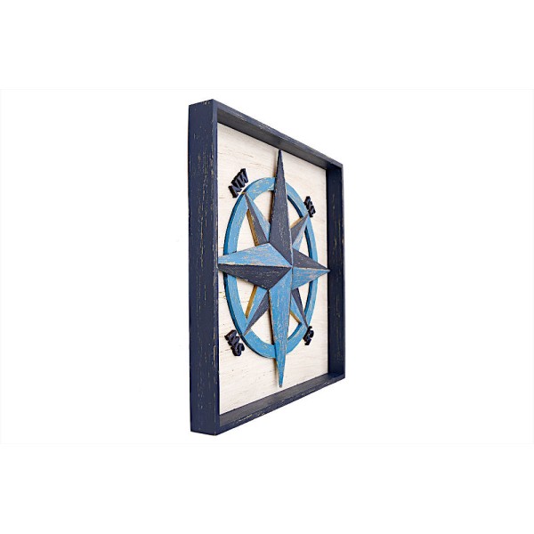 Decorative marine wood picture. A beautiful compass rose stands out in the painting.
