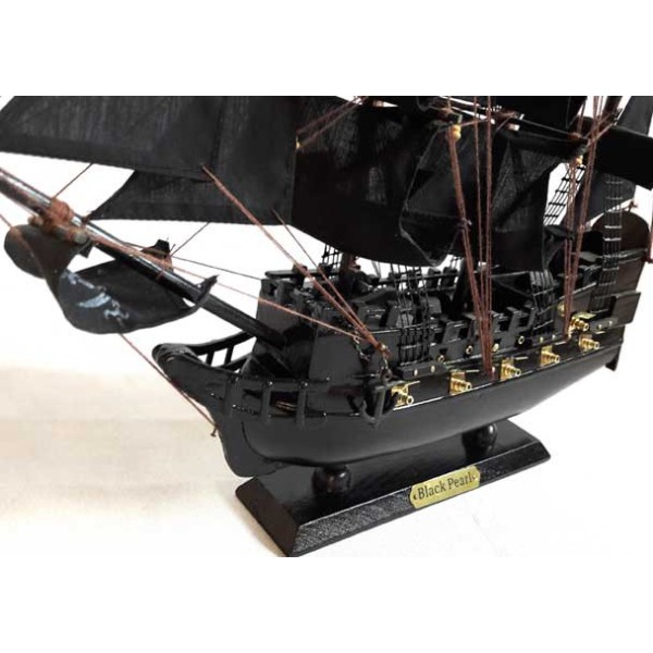 Model of the "Black Pearl", designed for Pirates of the Caribbean films. Beautiful model of marine decoration wooden made. The black sails are made of cotton.