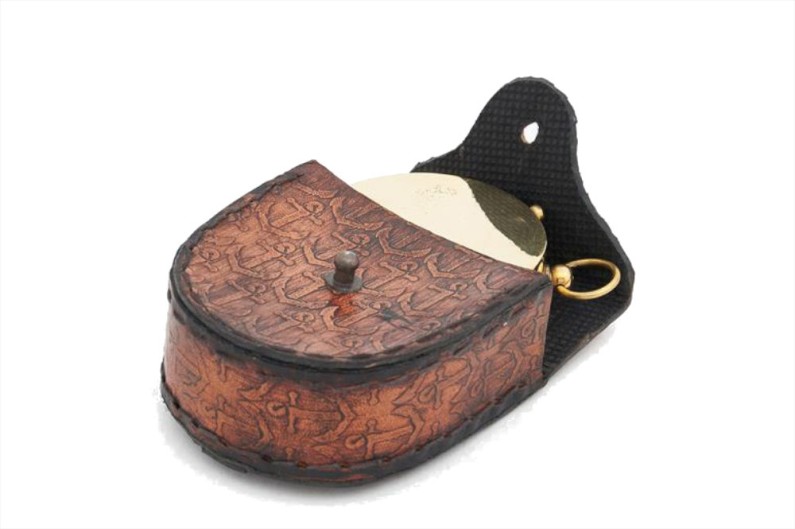 Brújula dorada envejecida con estuche de cuero. História de la brújula