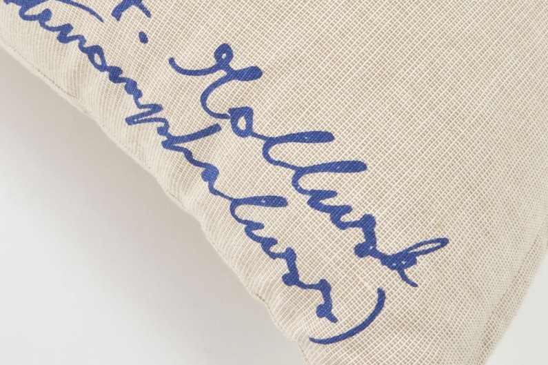 Funda de cojín + relleno chic con caracola de alta calidad, fondo de color beige.