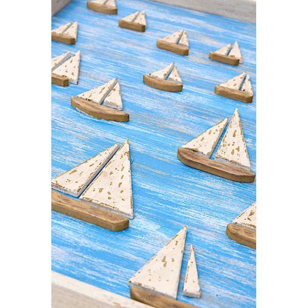 Cuadro marino decorativo en madera. En él se destaca un bonito barco marinero.