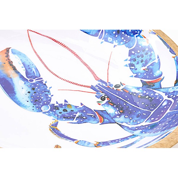 Cuenco fabricado en madera de té primera calidad y esmaltado con una langosta impresa en el interior. Ideal para poner la fruta en el centro de la mesa.