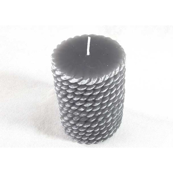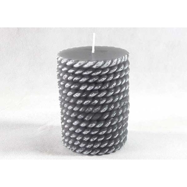 Set de 2 velas de cera en forma de rollo de cuerda, en color blanco y gris.