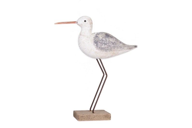 Figura de pájaro con forma del Chevalier, ave que se halla en zonas tropicales, ríos, humedas o marinas. Fabricado de resina y pintado a mano.