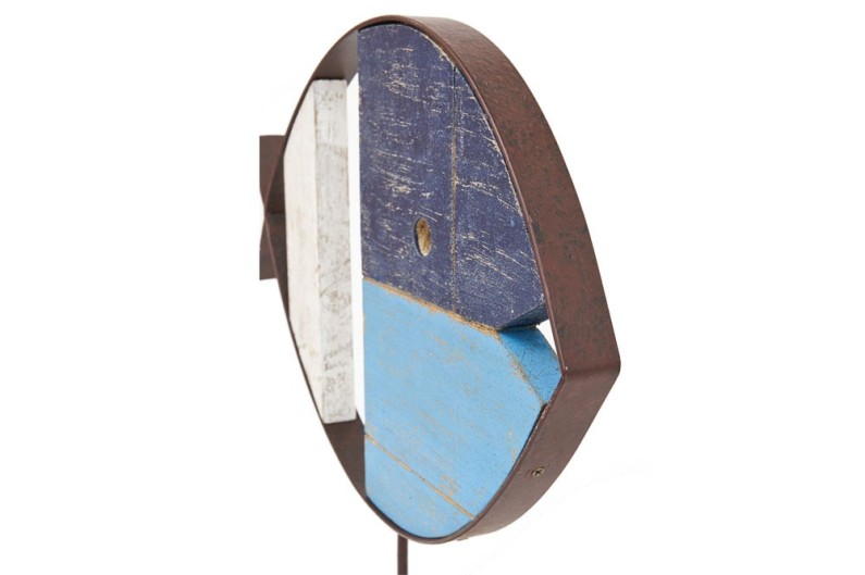 Figura de sobremesa de un pez, fabricado artesanalmente en madera y acero.